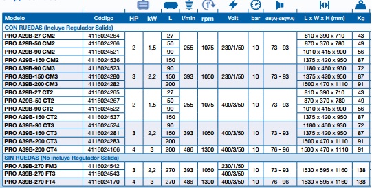Potência, confiabilidade e desempenho A gama PRO é uma excelente escolha para utilizadores que procurem mais valor num compressor com características, conforto especial, eficencia e desempenho.